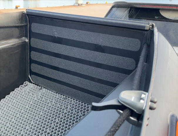 - Bow ramp for safe, easy access to the water, shore or dock, enabling efficient unloading of equipment, beaching without the need for jumping or ladders and smooth transfer of personnel, animals and rolling carts on and off the boat.