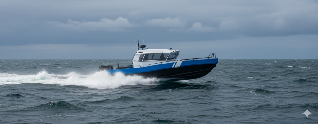 GRP allows for flexibility in hull design and excellent stability. This material is used in custom boats where precision, comfort or specialized configurations are key – such as rescue, inspection or support vessels.