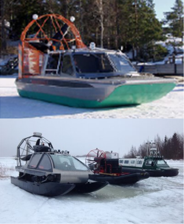 Airboats or “hydrokopters” as they are called here have been used in the Nordic countries ever since they were invented (in Canada in the 1930s). A great number of of people living on islands around the finnish and swedish coast are dependent on some mode of transportation that can cross both thin ice and open water. Hovercraft have vulnerable skirts that tend to get torn by the ice. This is why airboats are common in the Nordic countries.